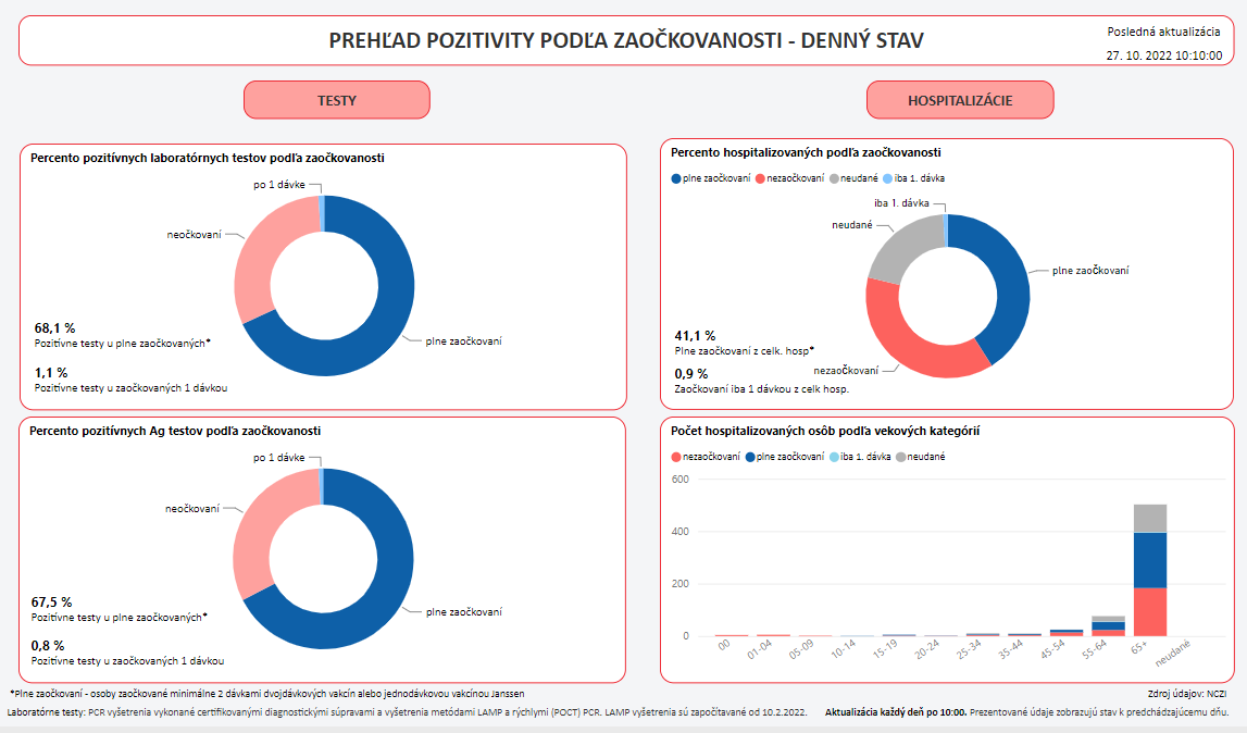 - zaočkovaní aspoň 1 dávkou (48.48% obyvateľov SR) tvoria 31.1% všetkých PCR pozitívnych