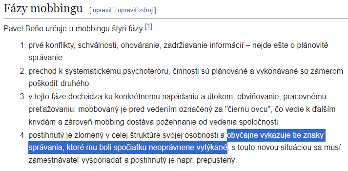 To je aj dôvod, prečo je mobbing taký zákerný a prečo bývajú často mobbovaní nevinní.