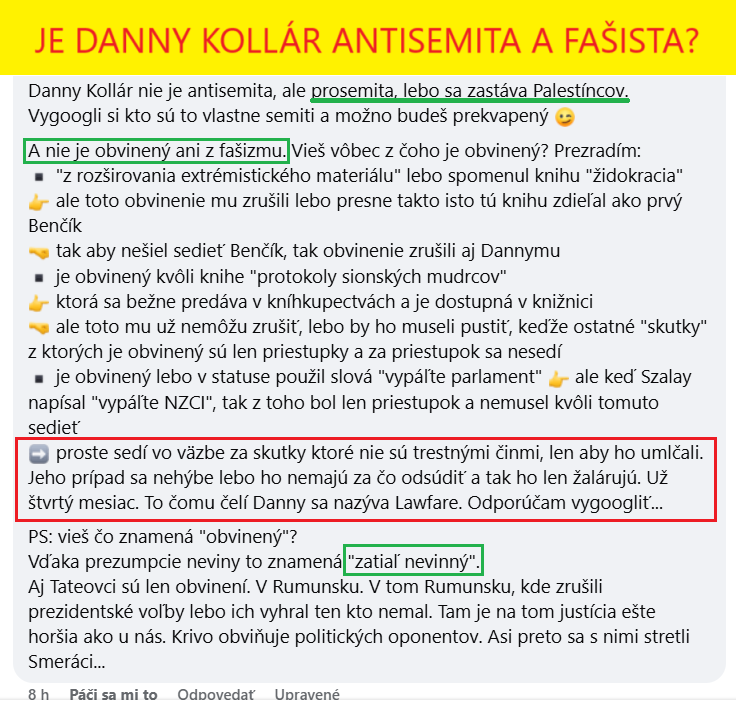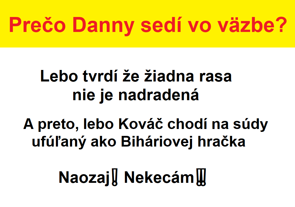 Dedukujem že práve pre toto nebol za tie 2 mesiace vypočutý: lebo zjavne nie je dostatok dôkazov na jeho odsúdenie. Keby OČTK postupovali ako by mali, zrejme všetko by sa už skončilo, Danny by bol bez obmedzení a médiá by ho už nemohli nazývať extrémista či antisemita 🤷♂️