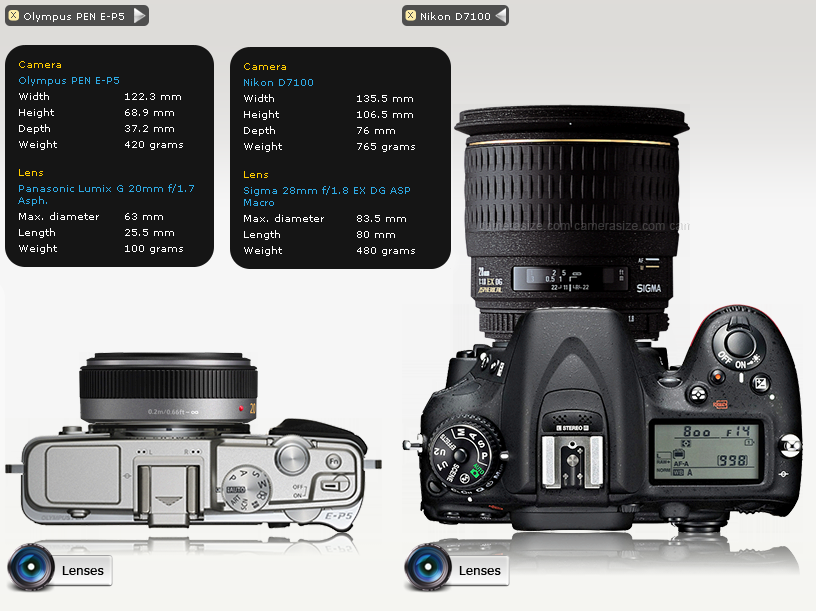 Už na prvý pohľad sú dosť rozdielne. V skutočnosti sa niektoré z týchto hodnôt nedajú priamo porovnávať. Je to tým, že rozsah objektívu býva u ILC s veľkými snímačmi udávaný inak ako u kompaktov (a treba ho prepočítať).